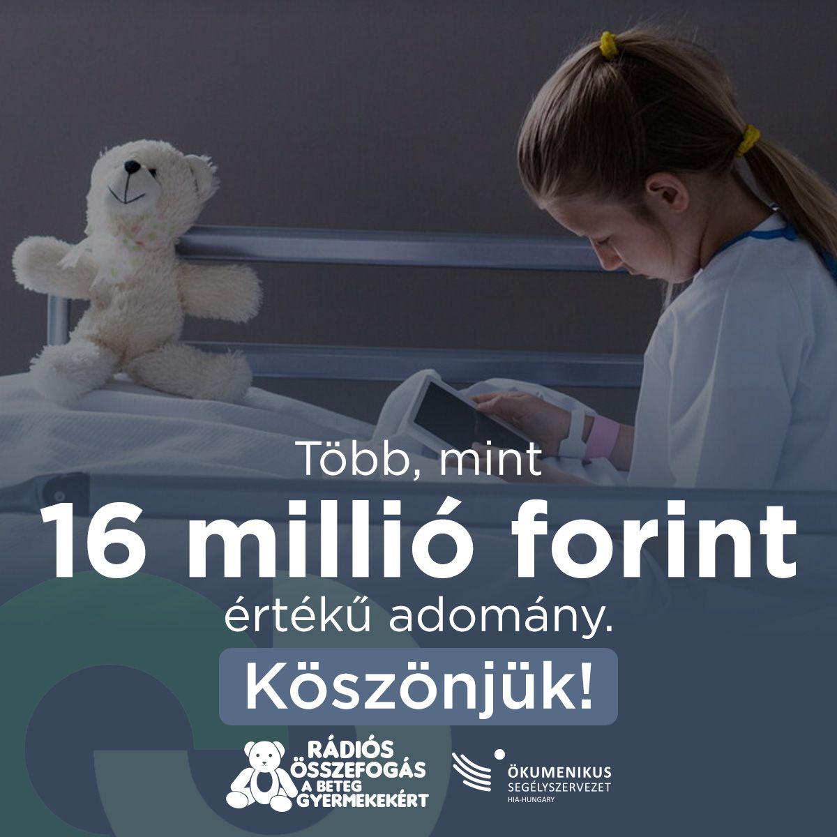 A Helyi Rádiók Országos Egyesületének összes tagja és még számos más hazai rádió csatlakozott ahhoz a kampányhoz, amelynek keretében okoseszközökre gyűjtöttek a kórházak gyermekosztályai számára. A rádiós összefogás elsöprő erejű volt, egy hét alatt túlszárnyalták a kitűzött célt. Az így összegyűlt több, mint 16 millió forint értékű adományért hálás köszönet illeti az adományozókat és a rádiós kollégákat is.