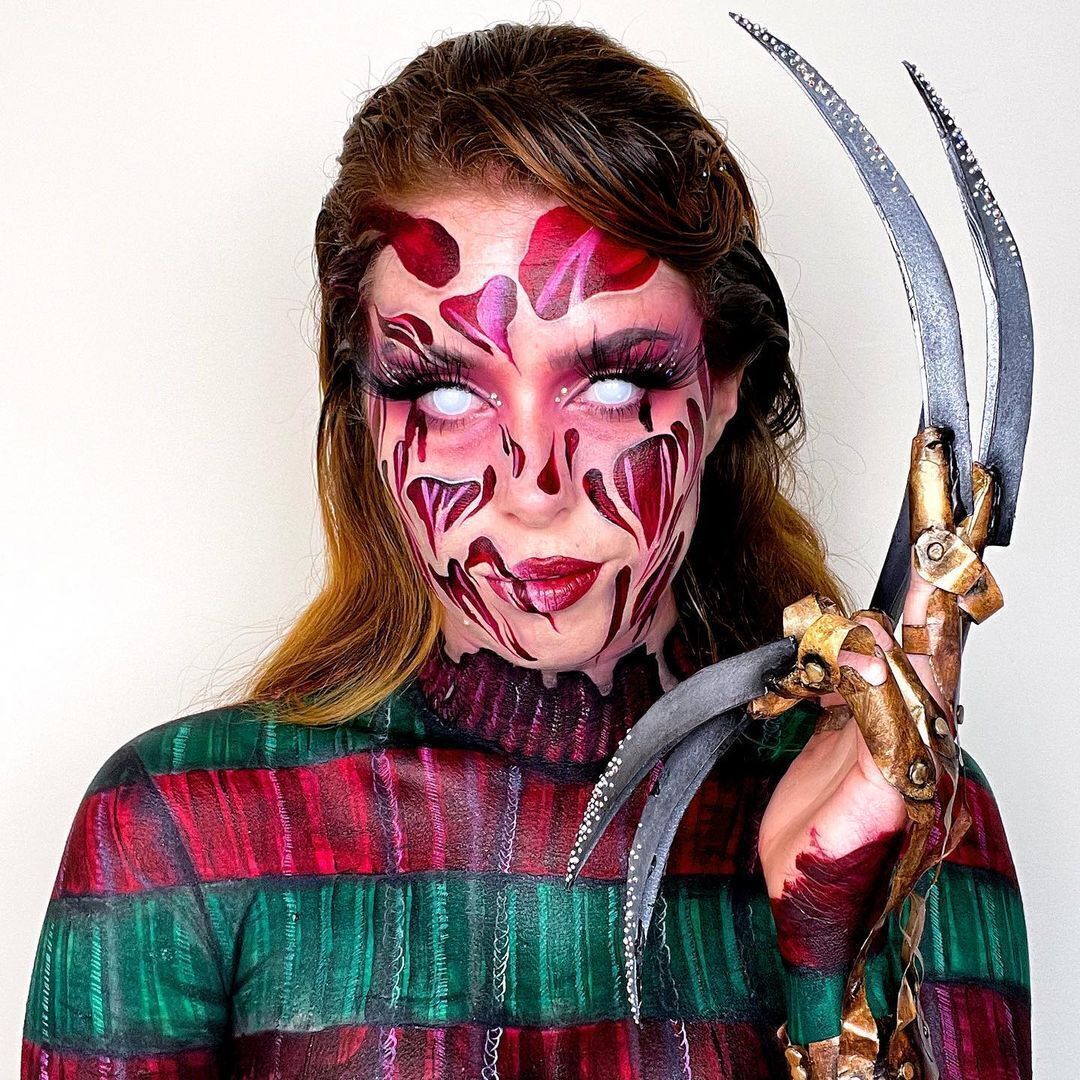 Amíg a gyermekei alszanak, Holly Murray rémisztő alakokká sminkeli magát.