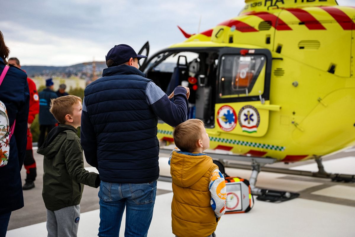 Bár a kórházi munka elsősorban a felnőttek érdeklődését kelti fel, az intézmény ezúttal a fiatalabb korosztályra is gondolt. Az Országos Mentőszolgálat és a magyar légimentők együttműködésének köszönhetően délután egy szolgálatban lévő mentőhelikopter is megérkezett és két órán keresztül a kórház helikopter-leszállóján állomásozott. Mivel ezt a helyszínt még a dolgozók többsége sem láthatta korábban, érthető izgalommal indultak útnak kicsik és nagyok, hogy egy pillantást vethessenek a város fölé emelkedő leszállópontra.