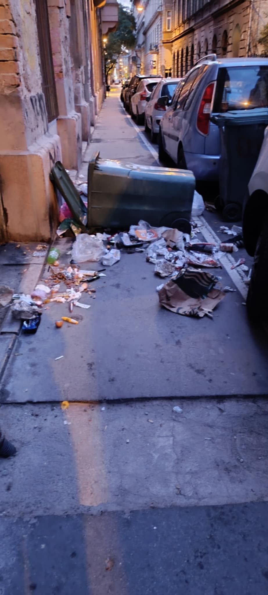 Aznap este is túltolták a bulit a turisták, de nagyon: kiborított kukák mindenütt, szeméttengerré vált a Király utca azon szakasza. „Nagyon koszos, és mocskos egy kerület lett. Ez az ocsmány szeméttenger, ami van elviselhetetlen. A turisták, amit hagynak maguk után, az is undorító!” – mondta Ildikó a Metropolnak.