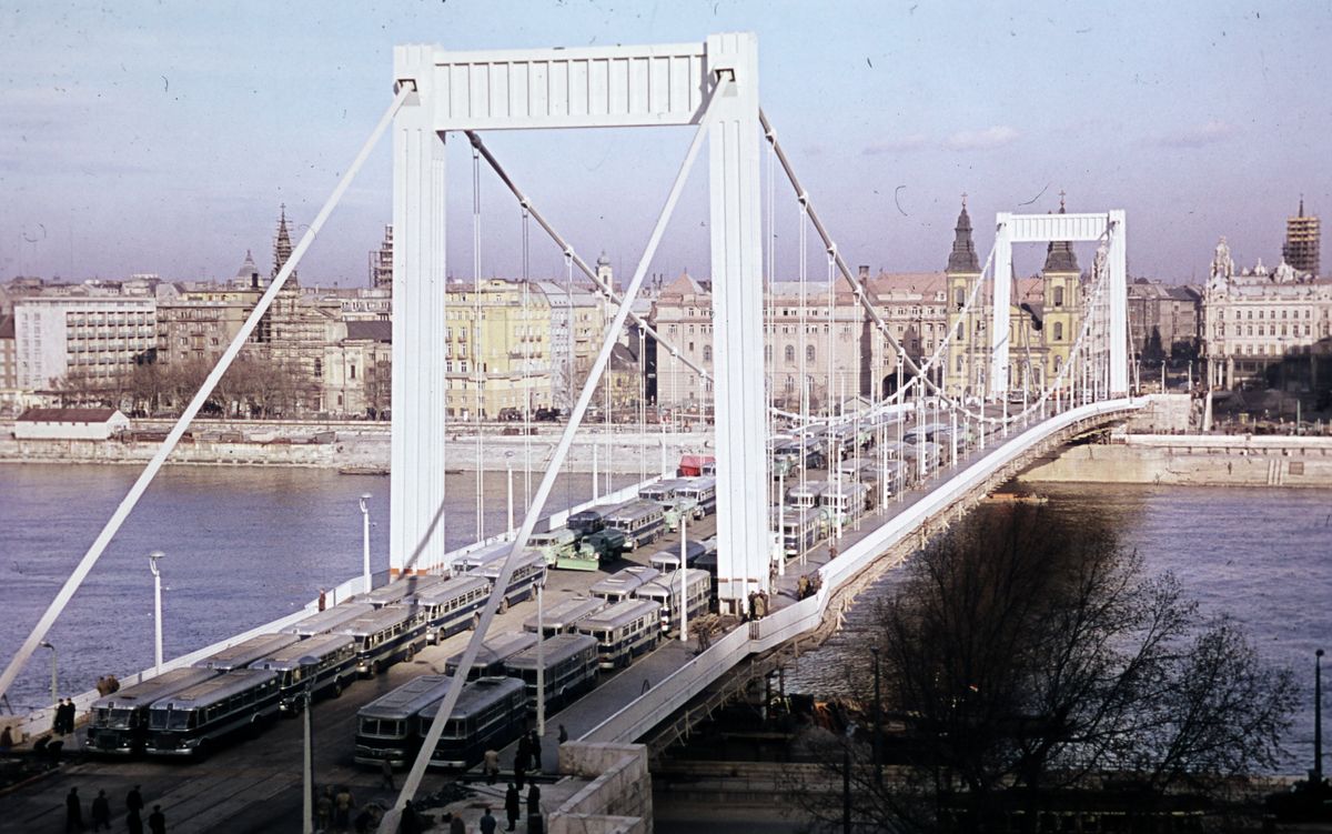 1964. november 21-én újra megindult a forgalom Budapest egyik legfontosabb átkelőjén, az Erzsébet hídon, amely csaknem húsz éven át hiányzott a Duna fölött. A második világháborúban felrobbantott híd romjai sokáig mementóként álltak a pesti oldalon, míg végül megkezdődtek az újjáépítés előkészületei. A főváros lakói pedig lélegzet-visszafojtva követték, hogyan születik újjá a város egyik ikonikus pontja.