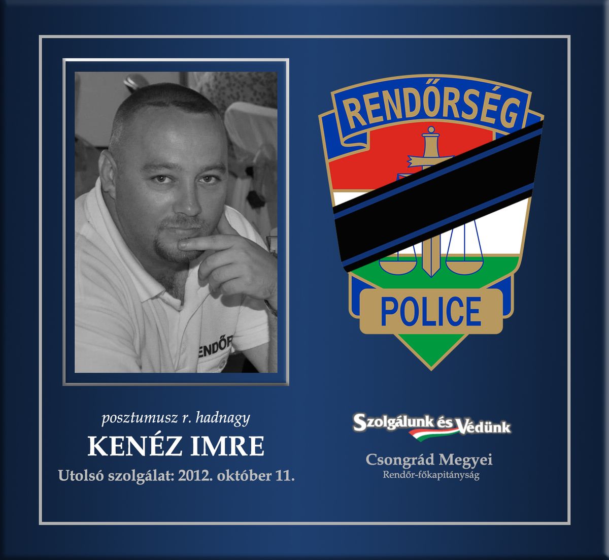 Radovic Dusán posztumusz főhadnagyot 2010. július 23-án, rendőri intézkedés közben elgázolták. Kollégánk a helyszínen életét vesztette.