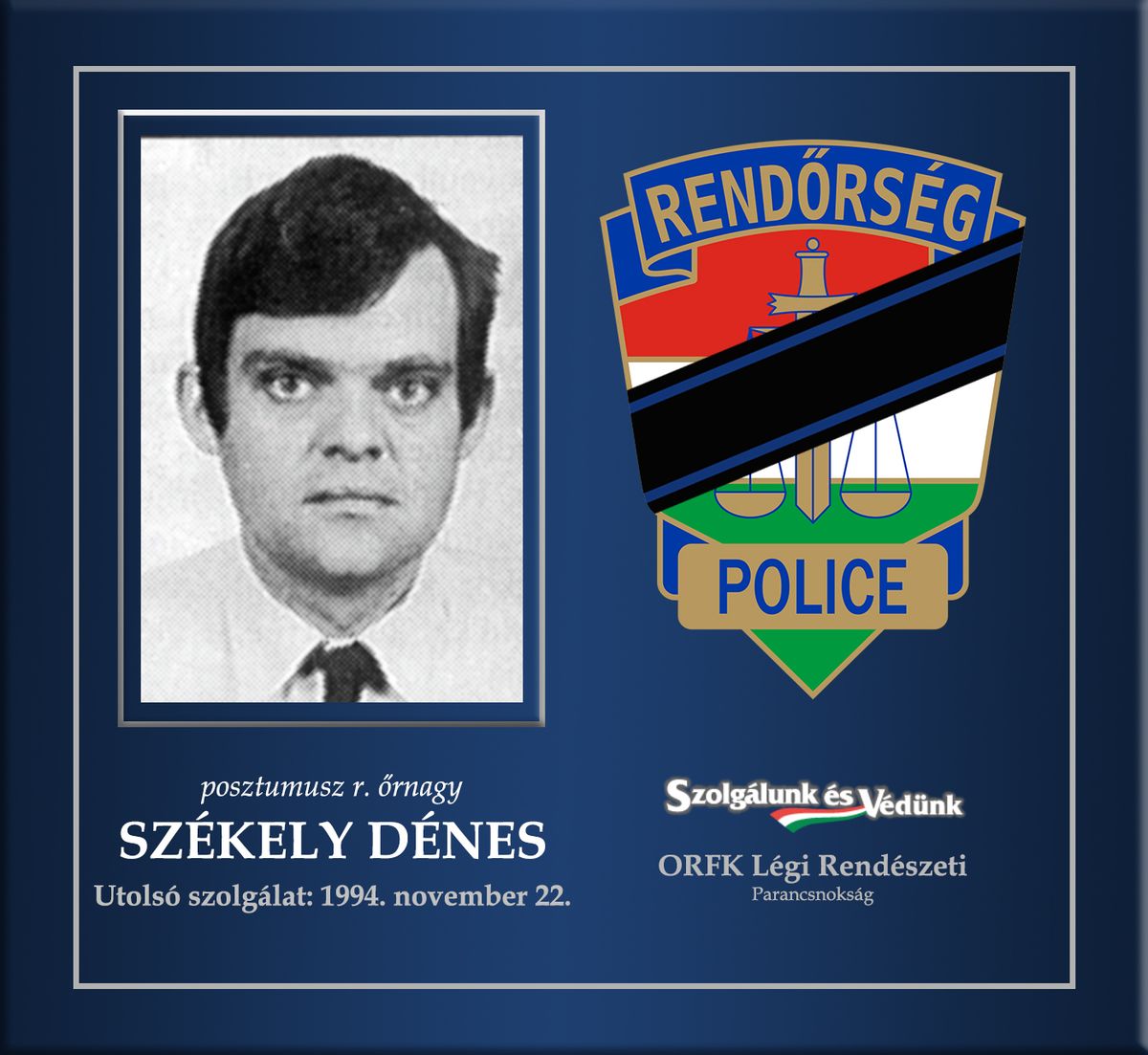 Guba József rendőr ezredes és Székely Dénes rendőr őrnagy 1994. november 22-én vesztette életét szolgálatteljesítés közben, egy tragikus helikopter-balesetben. Az eset a Rendőrség Légi Rendészeti Parancsnokságának szolgálati repülése során történt. A két tapasztalt rendőrpilóta aznap kiképzési és felderítő repülést hajtott végre, amikor rossz időjárási körülmények, főként a sűrű köd és a gyenge látási viszonyok miatt, a helikopter lezuhant.