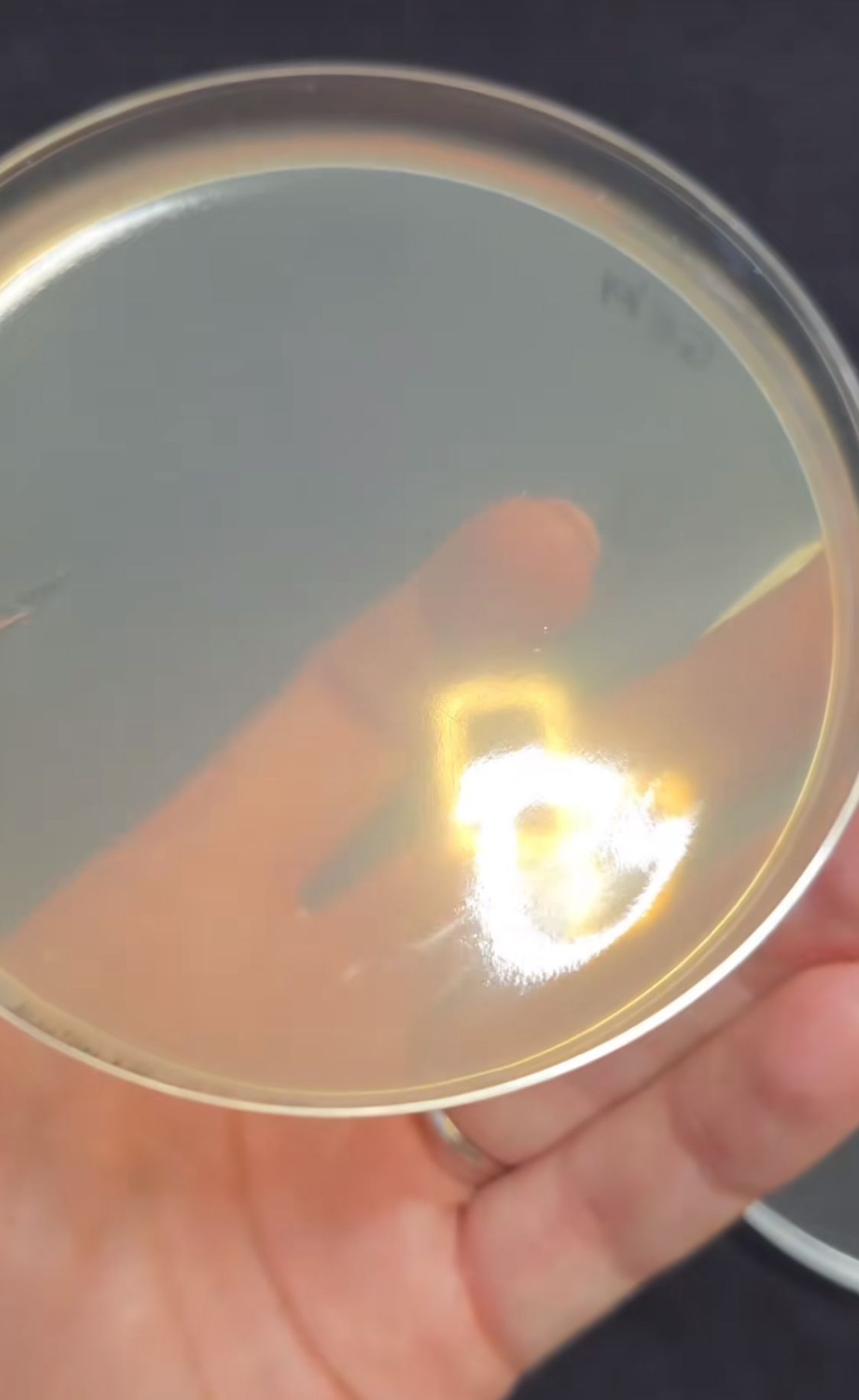 Rita egy speciális táptalajra, úgynevezett agar lemezre helyezte a mintát. Három különböző részre nyomta bele a villát. Három nap elteltével nézte meg az eredményeket: