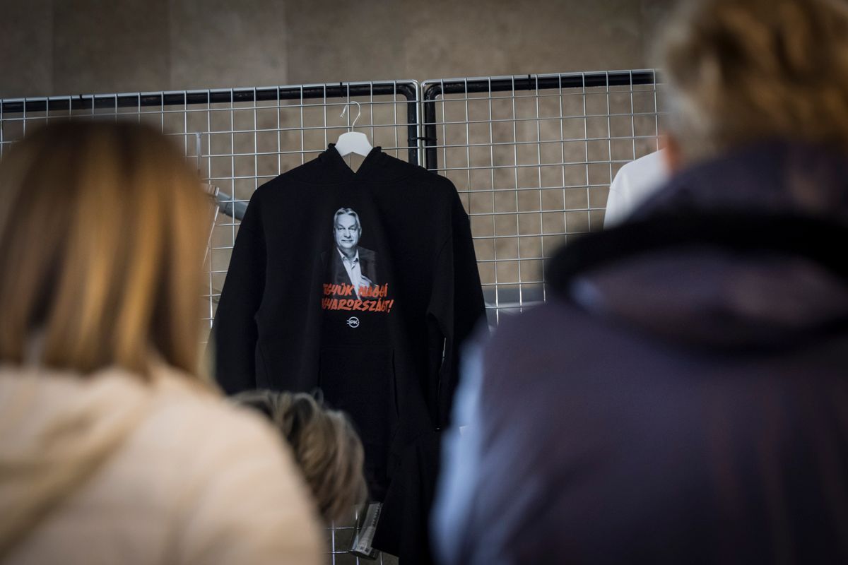 Győrben, az első Háborúellenes gyűlésen percek alatt elkapkodták az Orbán-firkás és az Orbán Pride-os pulóvereket és pólókat. Szabó Zsófi egy Orbán-rajzos pulóverben vezette a műsort Győrben, neki még jutott, ám sokan már hiába álltak sorba.