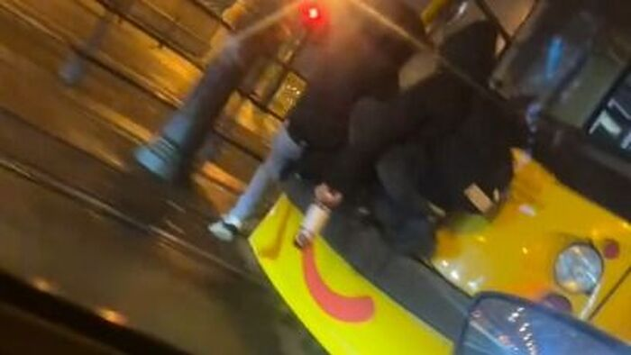 Megdöbbentő felvétel: piával a kezében utazott a 4-6-os villamos ütközőjén két fiatal