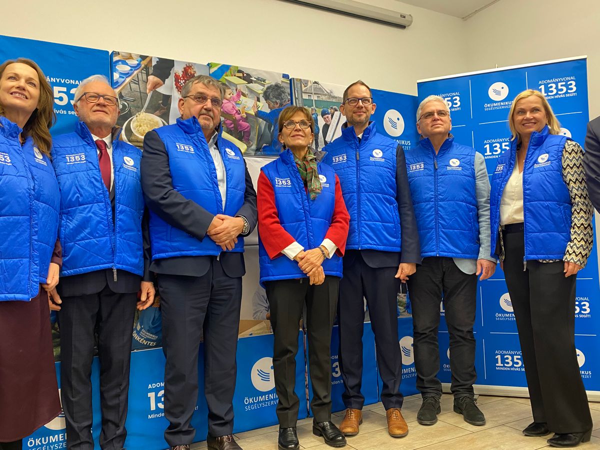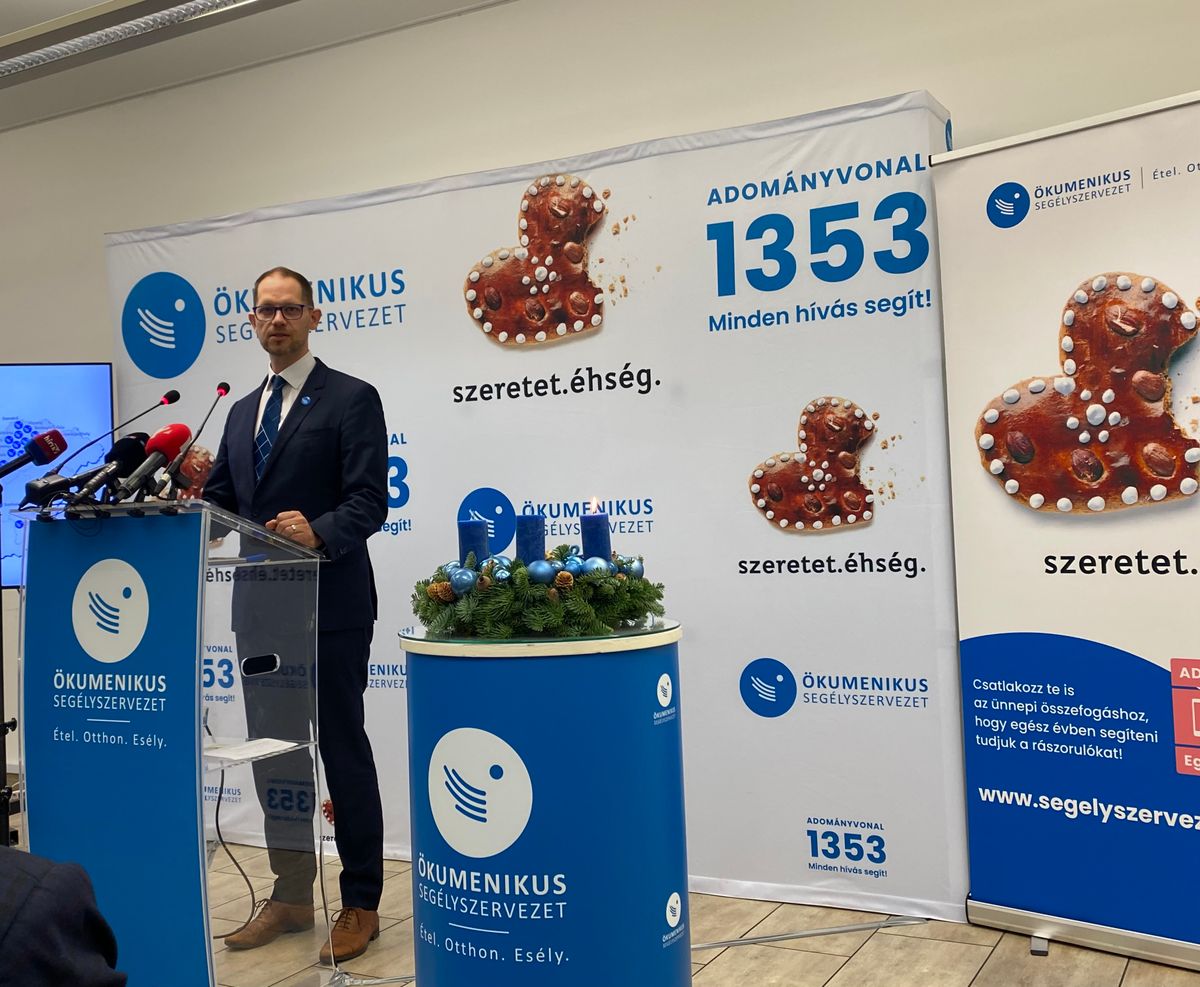 Lehel László elnök-igazgató köszönetet mondott a támogatóknak, jószolgálati nagyköveteknek és kiemelten Lévai Anikónak, aki a kezdetektől jelen van és segíti – kétkezi és szellemi munkájával is – „cselekvő szeretettel, alázattal és áldozatot vállalva” az Ökumenikus Segélyszervezet által felkarolt személyeket, családokat, ügyeket.