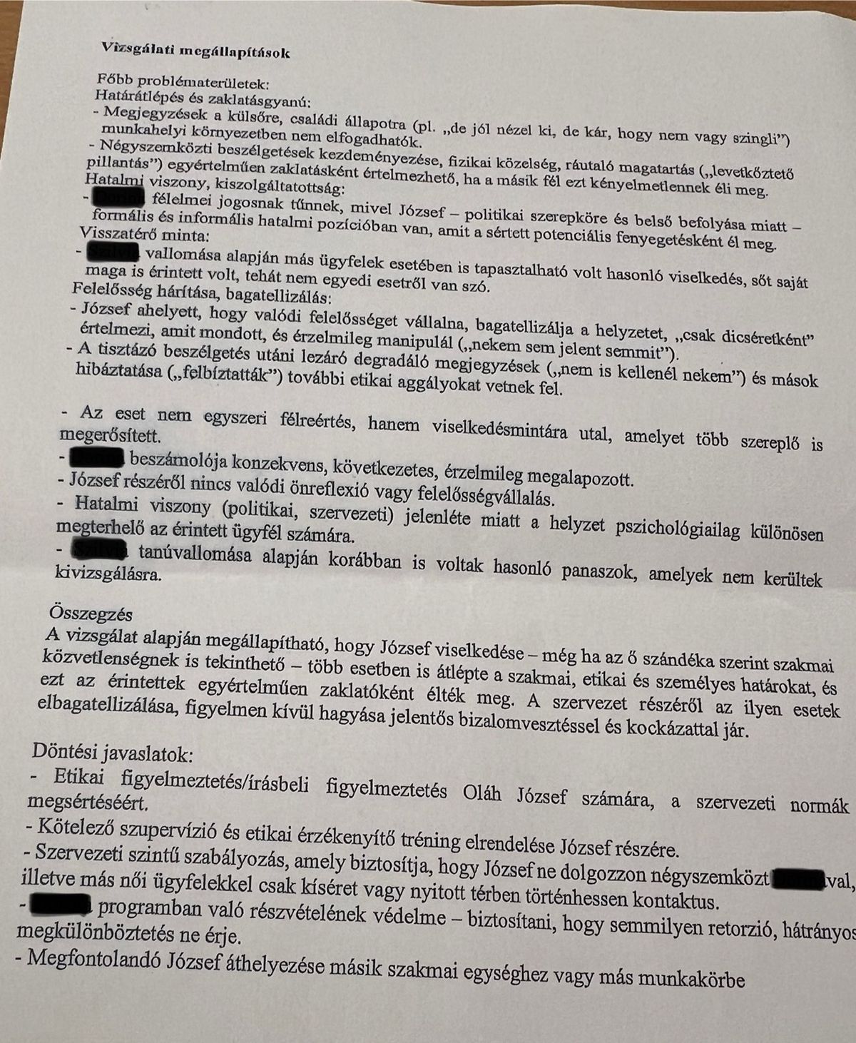 A baloldali városvezetésnek még az sem számít, hogy több női áldozata volt a hatalmával visszaélő Oláhnak, aki ráadásul a Metropolhoz eljutott belső vizsgálati jegyzőkönyv szerint is, mindent elkövetett, hogy a zaklatási ügye ne kerüljön ki az intézmény falai közül. Féltette az egzisztenciáját. A jegyzőkönyv szerint azt hangoztatta a hajléktalanokkal foglalkozó szociális intézményben, hogy „ő nem akárki”, volt már „másik három eset is, ami nem ment tovább”. Azaz eltusolták. A botrány kirobbanását követően,