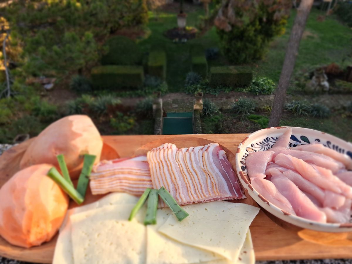 A csiberoló hozzávalói 2-4 főre, kerek kerámia sütőtálban