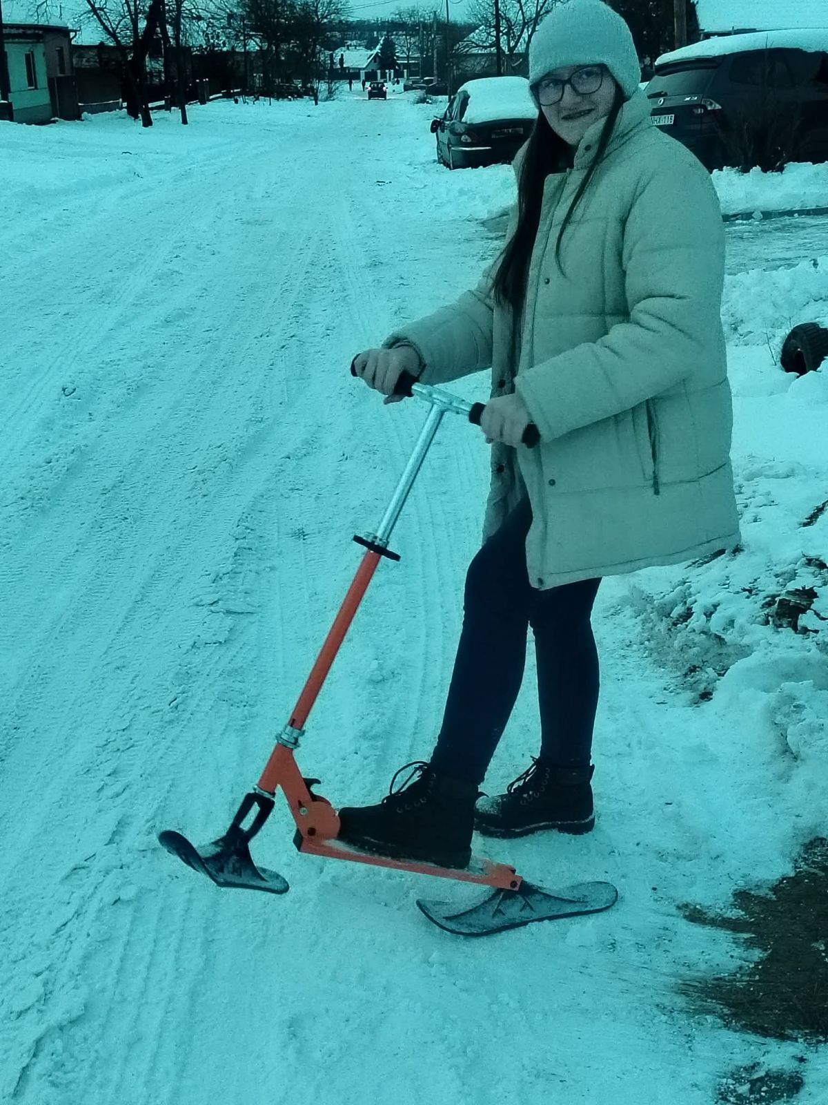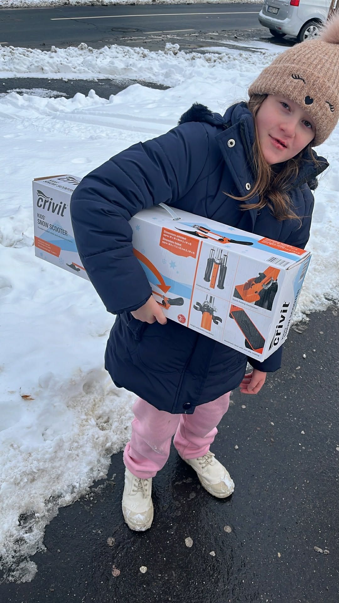 Az ajándék hóroller hasznos, minden lány tudja használni a családból.