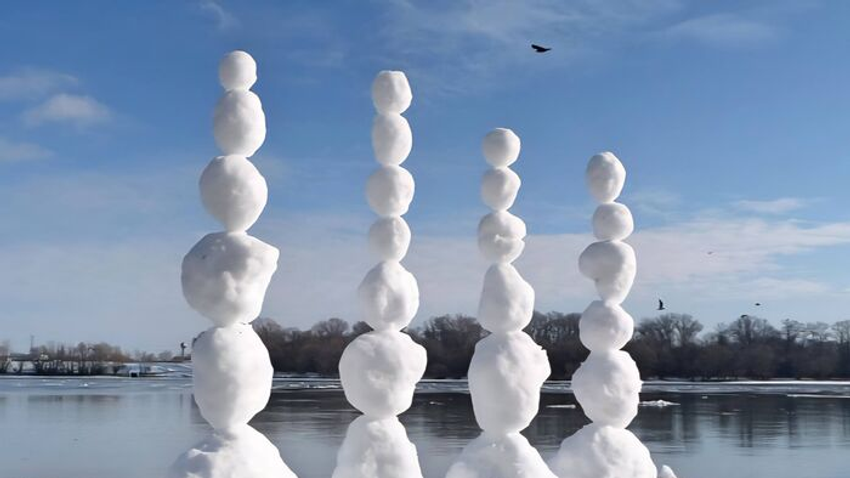 Tíz évvel ezelőtt jégből készített szobrokat a Római-parton, idén hógolyókból emelt tornyokat a budakalászi ártéri erdőben. Rengetegen jártak a csodájára és örülnek, hogy a művész nem fejezte be az alkotást, miután tavaly novemberben szétrombolták a farönkökből, termésekből és számos egyéb természetes anyagból részletesen kidolgozott hatalmas madáretetőjét, Manófalvát.