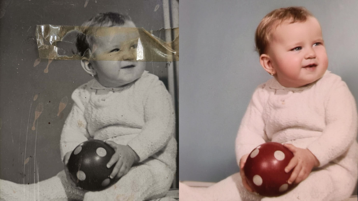 Így kezdődött hát. A férfi saját magától tanult mindent, mára pedig profi emlékmentő. Legtöbbször digitálisan, lefotózva kapja meg a régi képeket. Laptop, szerkesztőprogram és ritkán az MI hármasával javítja fel a képeket.