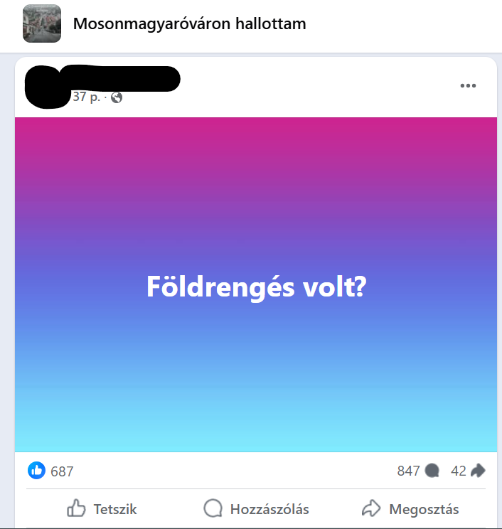 Február 21-én szombaton, nagyjából 13:44 perckor földrengés csapott le Mosonmagyaróvárra. A Mosonmagyaróváron hallottam elnevezésű Facebook csoportban azóta sem térnek magukhoz a helyiek.