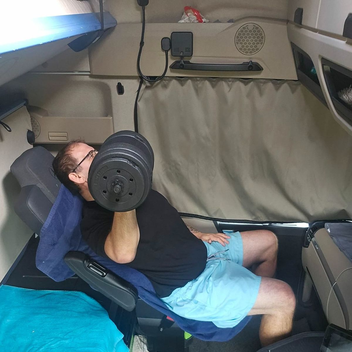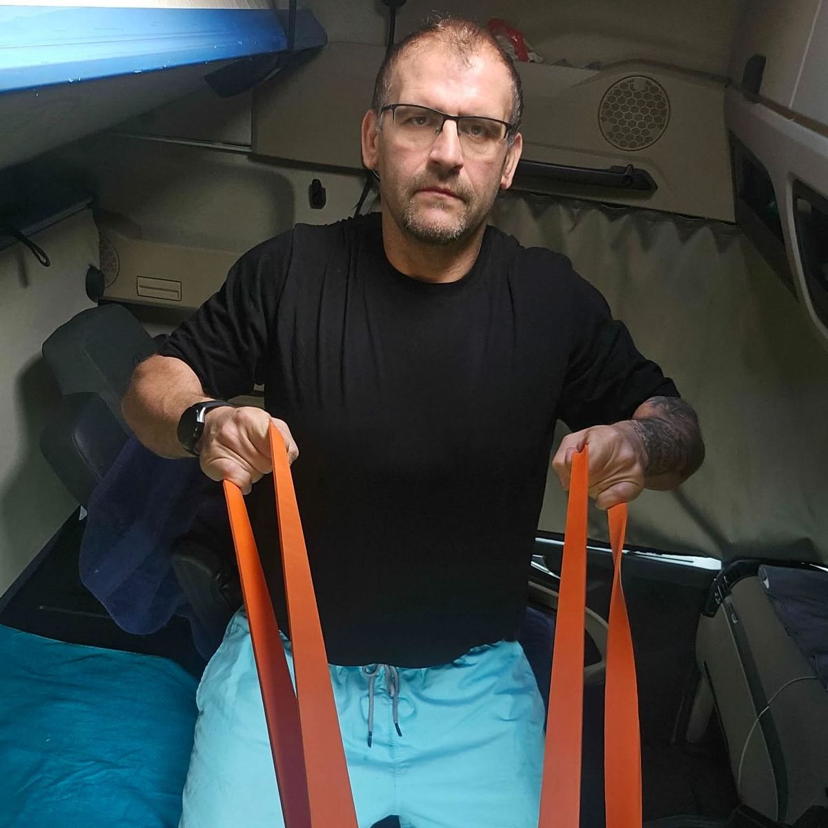 Mindössze 1 pár 2 kezes súlyzóra és egy 35 kilós gumiszalagra, szoros étrendre és időbeosztásra volt szüksége, hogy tabut döntsön: igenis, le lehet fogyni kamionozás mellett is!