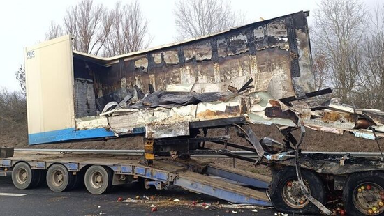 Hatalmas lángok - Teljes terjedelmében égett egy kamion az M3-ason