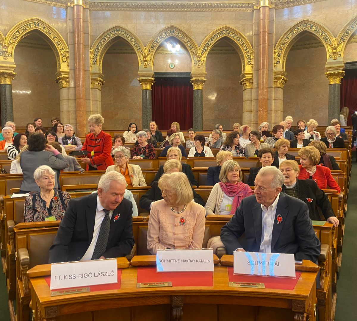 A hölgyek mellett csekély számban a férfi nem is képviseltette magát. Kiss-Rigó László, szeged‒csanádi megyéspüspök a keresztény értékekre, mint örök emberi értékekre, mutatott rá, kiemelve a teremtett világban a férfi és a nő személyi méltóságát, a két nem össze nem keverhető biológiai, szellemi-lelki-testi identitását, a család, a nemzet, a béke kulcsfontosságú szerepét. Schmitt Pál volt köztársasági elnök, kétszeres olimpiai bajnok párbajtőrvívó a feleségét, Schmittné Makray Katalin olimpiai ezüstérmes magyar tornásznőt kísérte el, akivel idén ünneplik 60. házassági évfordulójukat.