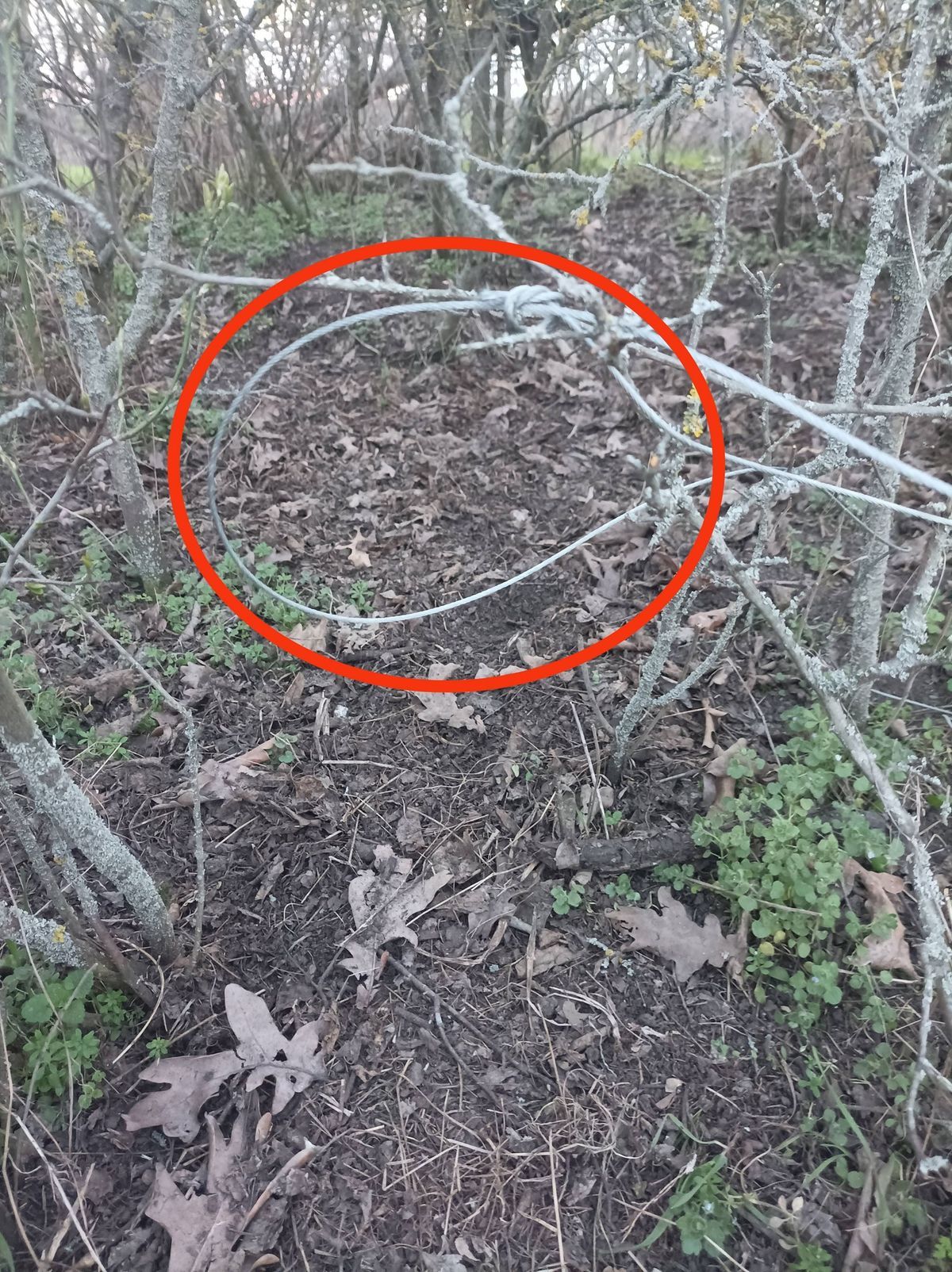 Láttuk, hogy valami mozog a fa tövében, a drót fogva tartott egy erdei nyuszit, a nyaka köré volt tekeredve
