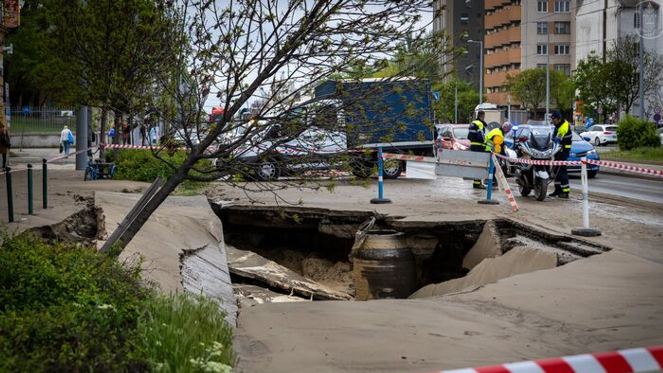 Friss helyszíni fotókon a beszakadt Róbert Károly körút