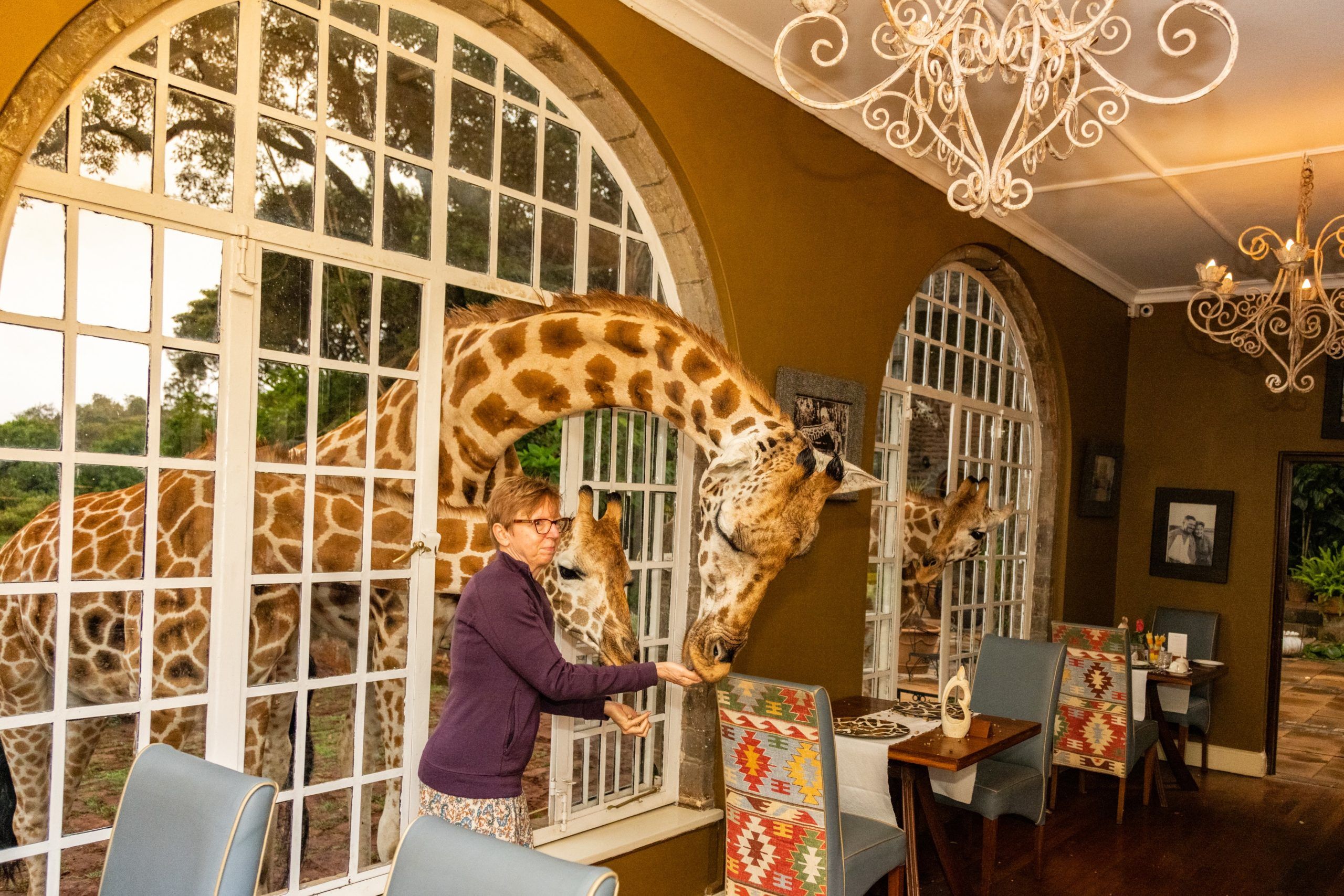 Nairobiban működik a zsiráf szálló, amelynek kertjében több hosszú nyakú állat él szabadon.