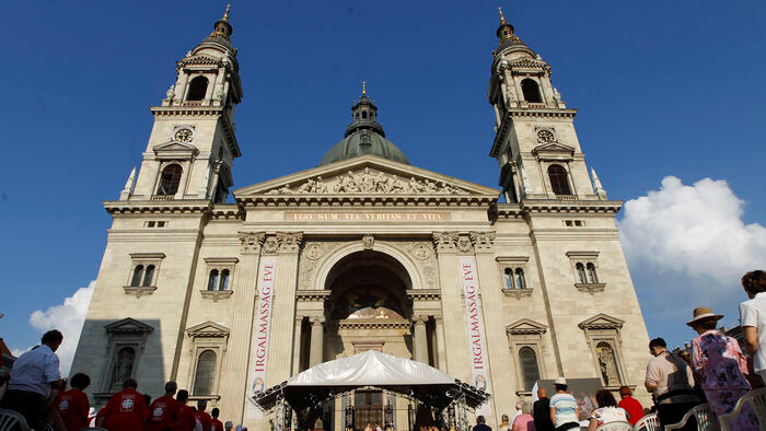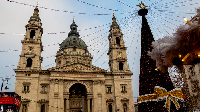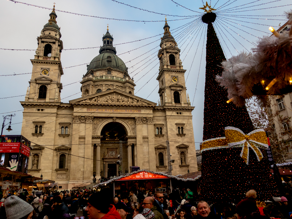 A Szent István téren hatalmas a tömeg. Ezt a képet egy karácsonyi vásáron fotózták.