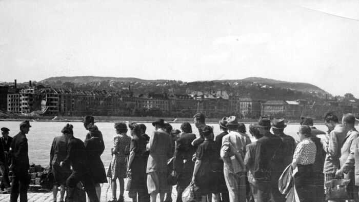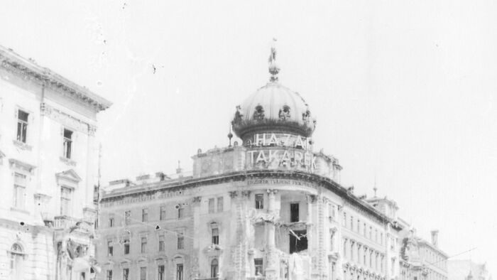Pesti panoráma kiégett házzal Fotó: Fortepan/Vörös Hadsereg