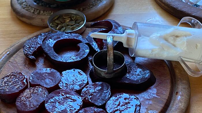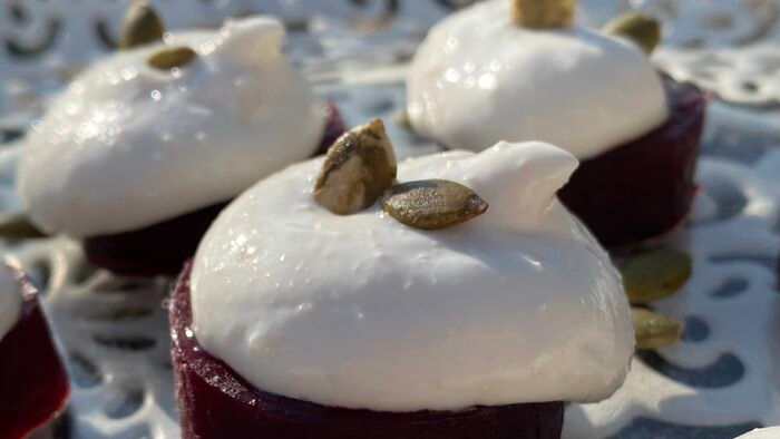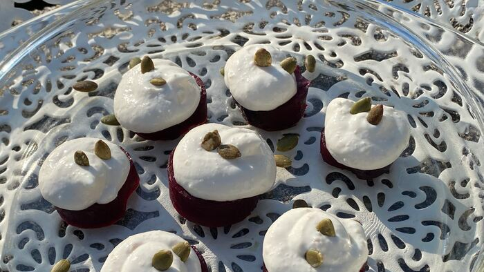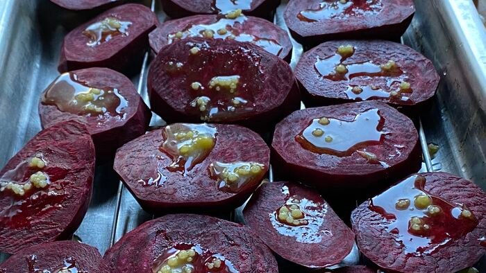 A húsos falatok alternatívájaként remekül passzolt a cékla-mignon Király Roland kovászos kenyeréhez is!