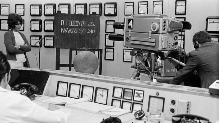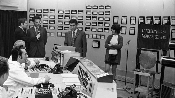 1971, Úri utca 72. – Az OVT vezérlőterme a villanykapcsolós szavazás pillanatában. 1971 Fortepan / Szalay Zoltán
