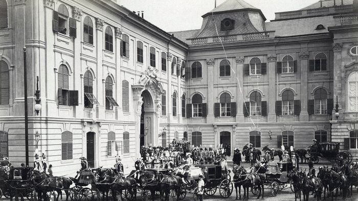 Budapest, 1900 – A Szent Korona átvitele a Zsigmond-kápolna feletti koronateremből a Mátyás-templomba. Forrás: Fortepan / Budapest Főváros Levéltára – Klösz György fényképei