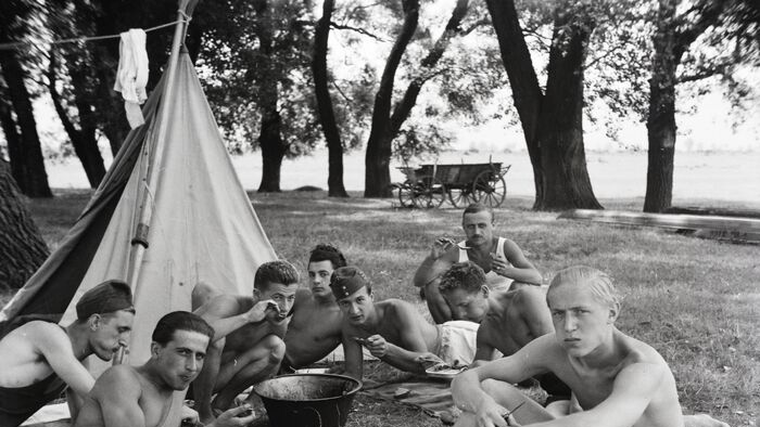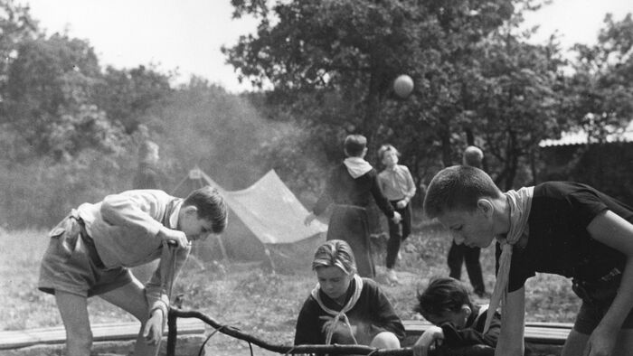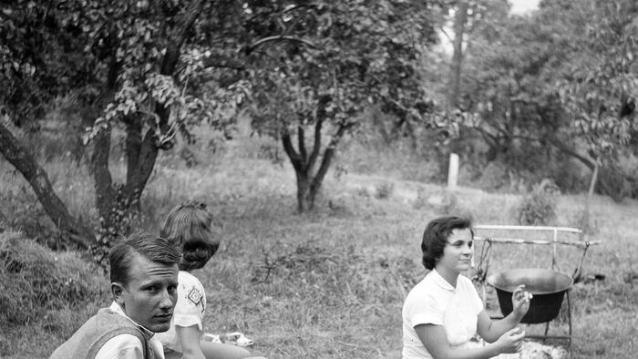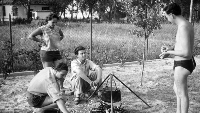 Itt jól látszik, hogy ki az úr a bogrács felett. Fotó: Fortepan/ Kriss Géza