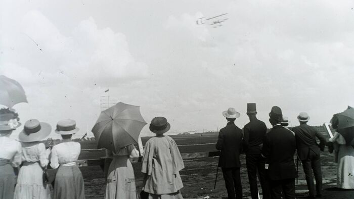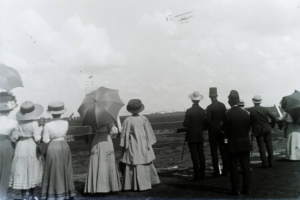 A Budapesti Nemzetközi Repülőverseny közönsége Rákosmezőn 1910. június 5–17. között. Fotó: Fortepan / Magyar Műszaki és Közlekedési Múzeum / Archívum / Negatívtár / Pölös István gyűjteménye / Czakó Ferenc
