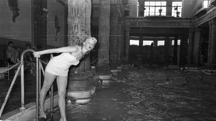 Gellért Gyógyfürdő, hullámmedencéje 1954-ben. Forrás: Fortepan / Fortepan/Album083