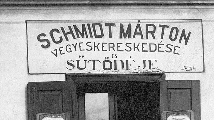 Schmidt Márton vegyeskereskedése és sütödéje, 1933-ban. Magyarország, Sásd. Forrás: Fortepan / Erky-Nagy Tibor