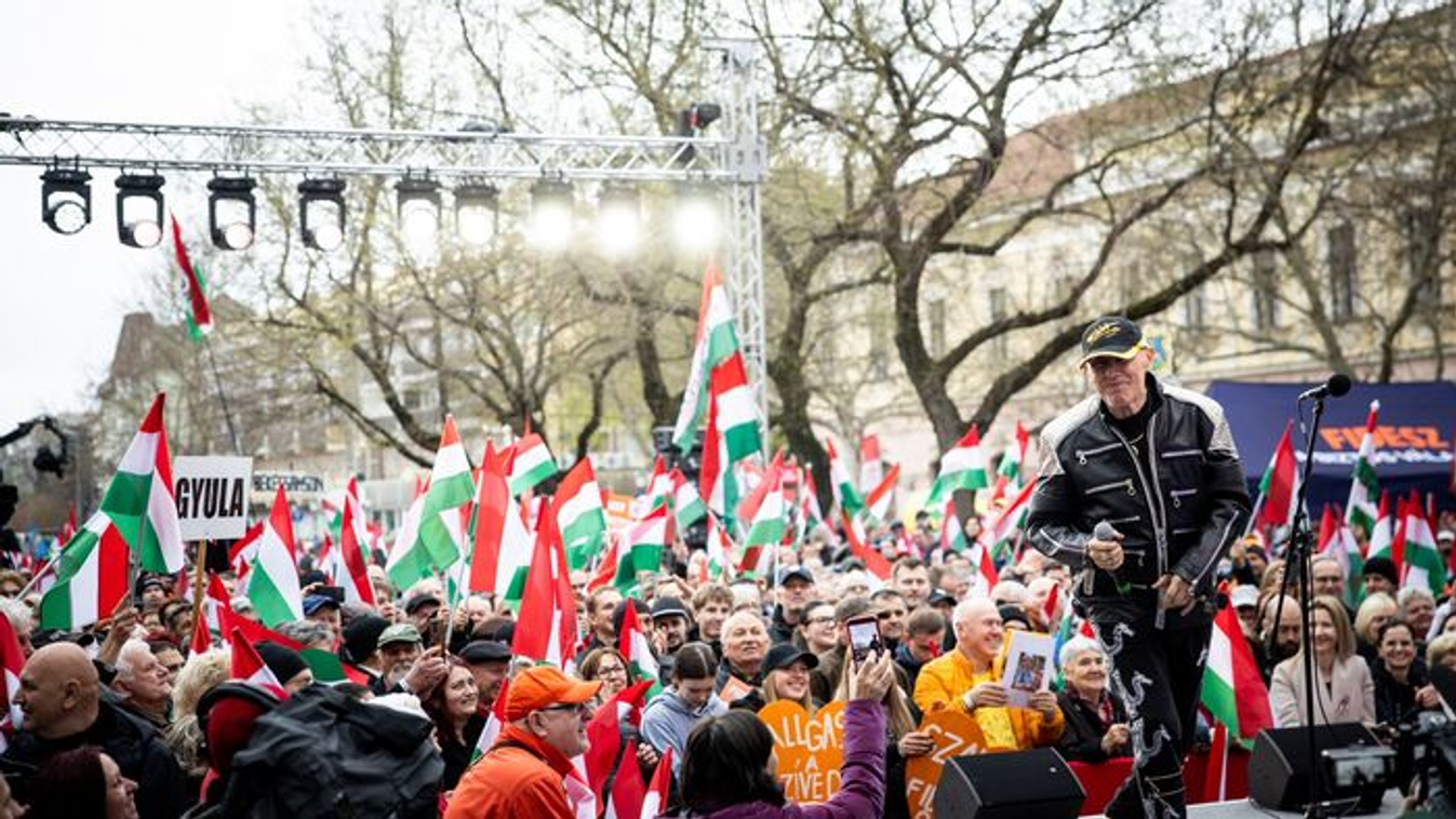 "Mondjad nyugodtan!" Így biztatta a hatalmas tömeg a szakadó esőben Orbán Viktort Békéscsabán
