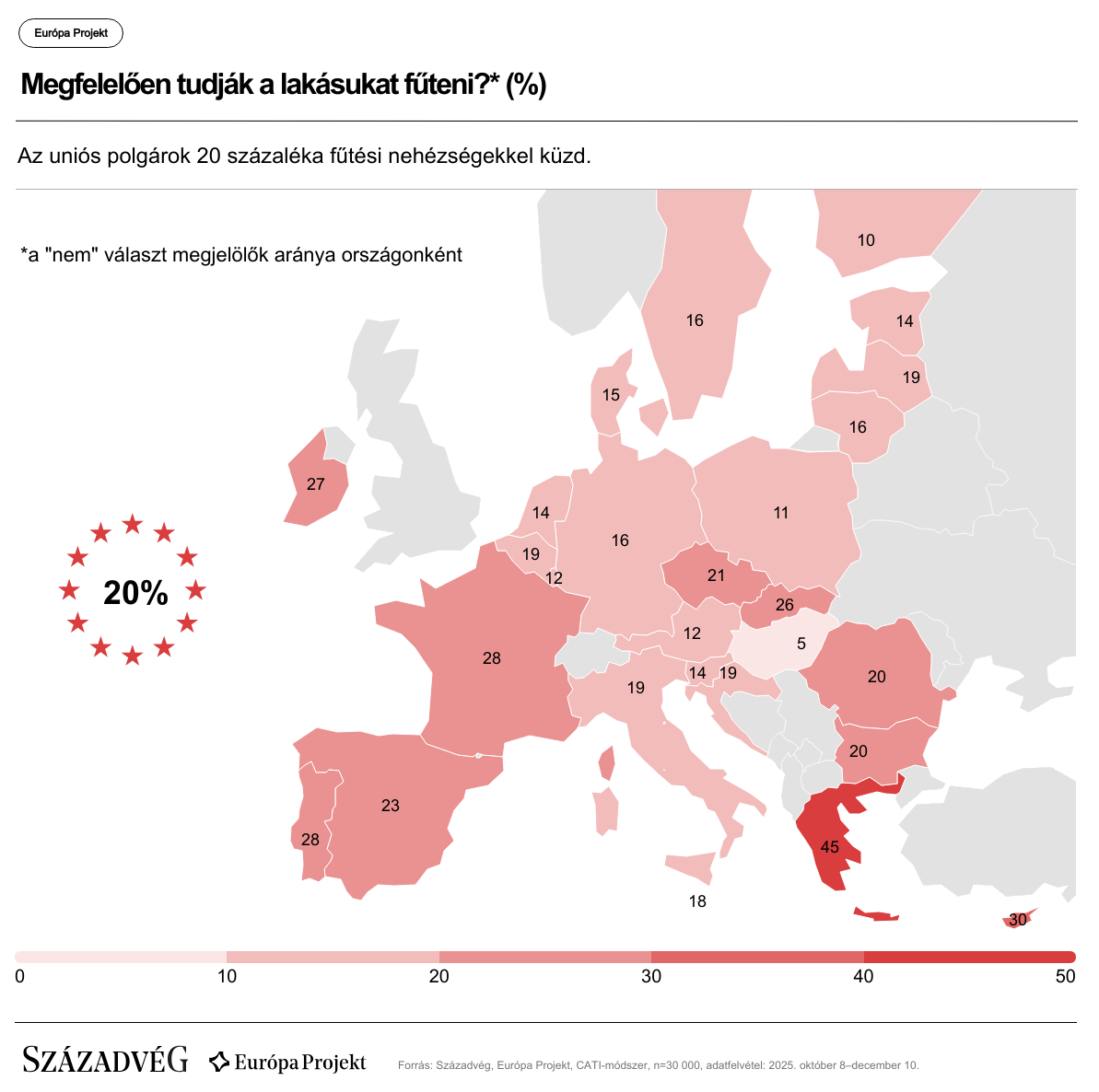A Századvég Európa Projekt-kutatásának friss eredményei rámutatnak, hogy a megélhetési költségek gyors és drasztikus emelkedése széles társadalmi rétegek számára súlyos egzisztenciális nehézségeket okozott Európa-szerte. Az uniós lakosság 20 százaléka nem képes kellő mértékben felfűteni az otthonát, és 28 százalékukkal előfordult az elmúlt egy évben, hogy anyagi okok miatt nem tudták befizetni közüzemi díjaikat.