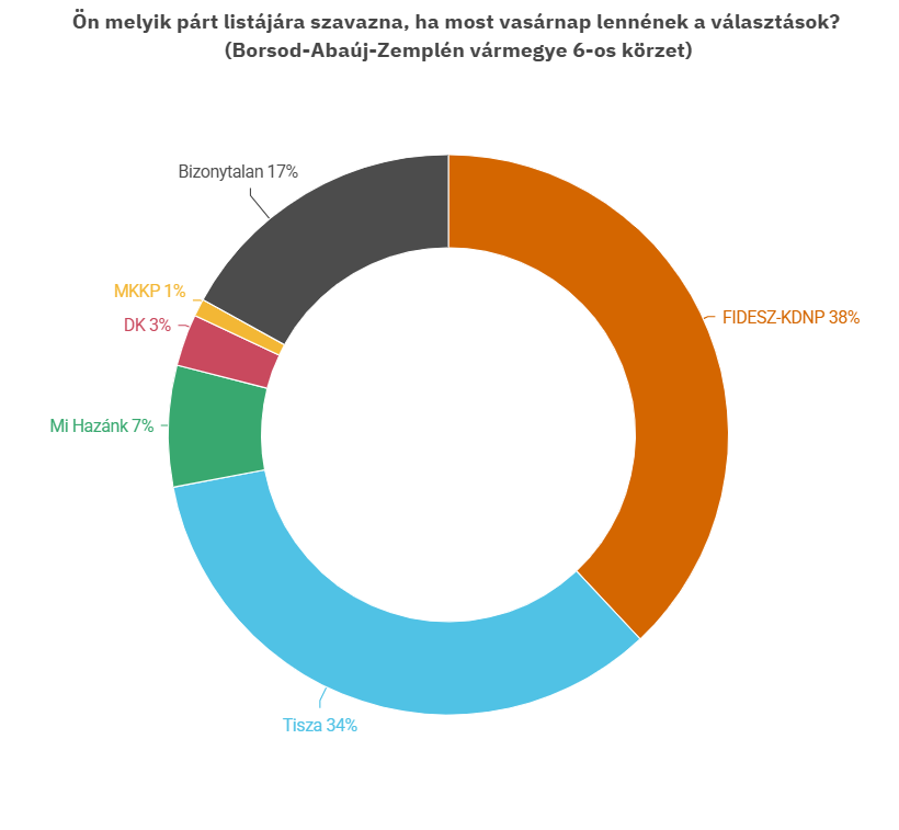 A Borsod-Abaúj-Zemplén vármegyei 6-os számú körzetben (Szerencs és Tiszaújváros és környéke), ha most vasárnap lennének a választások, akkor a megkérdezettek: