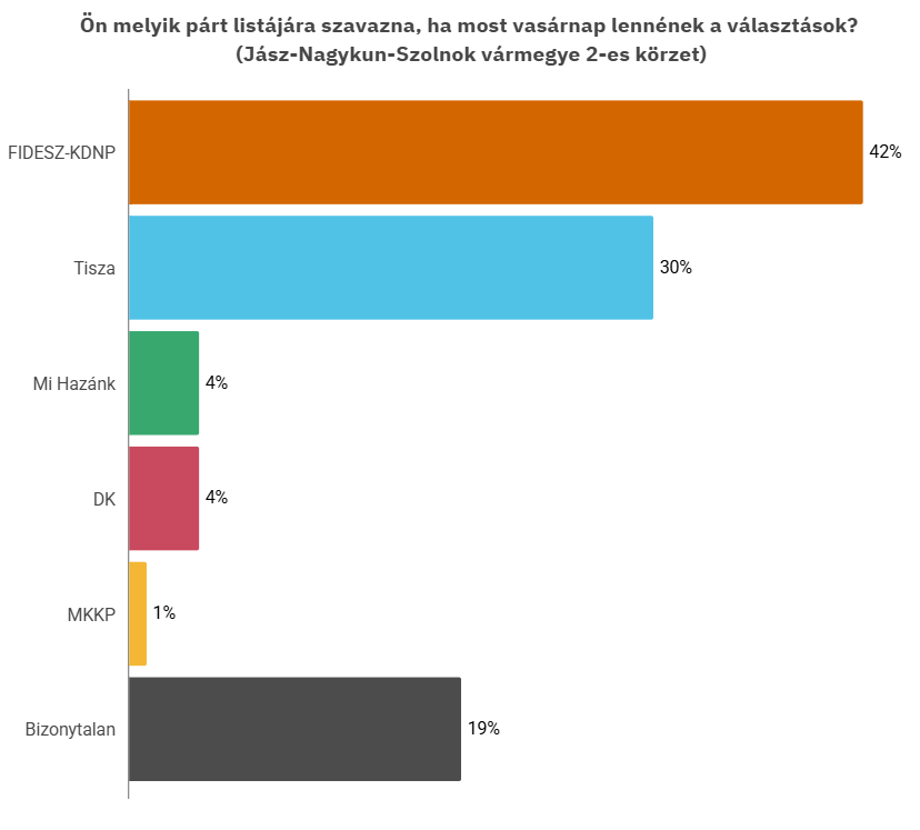 A Jász-Nagykun-Szolnok vármegyei 2-es számú körzetben (Jászberény és környéke), ha most vasárnap lennének a választások, akkor a megkérdezettek: