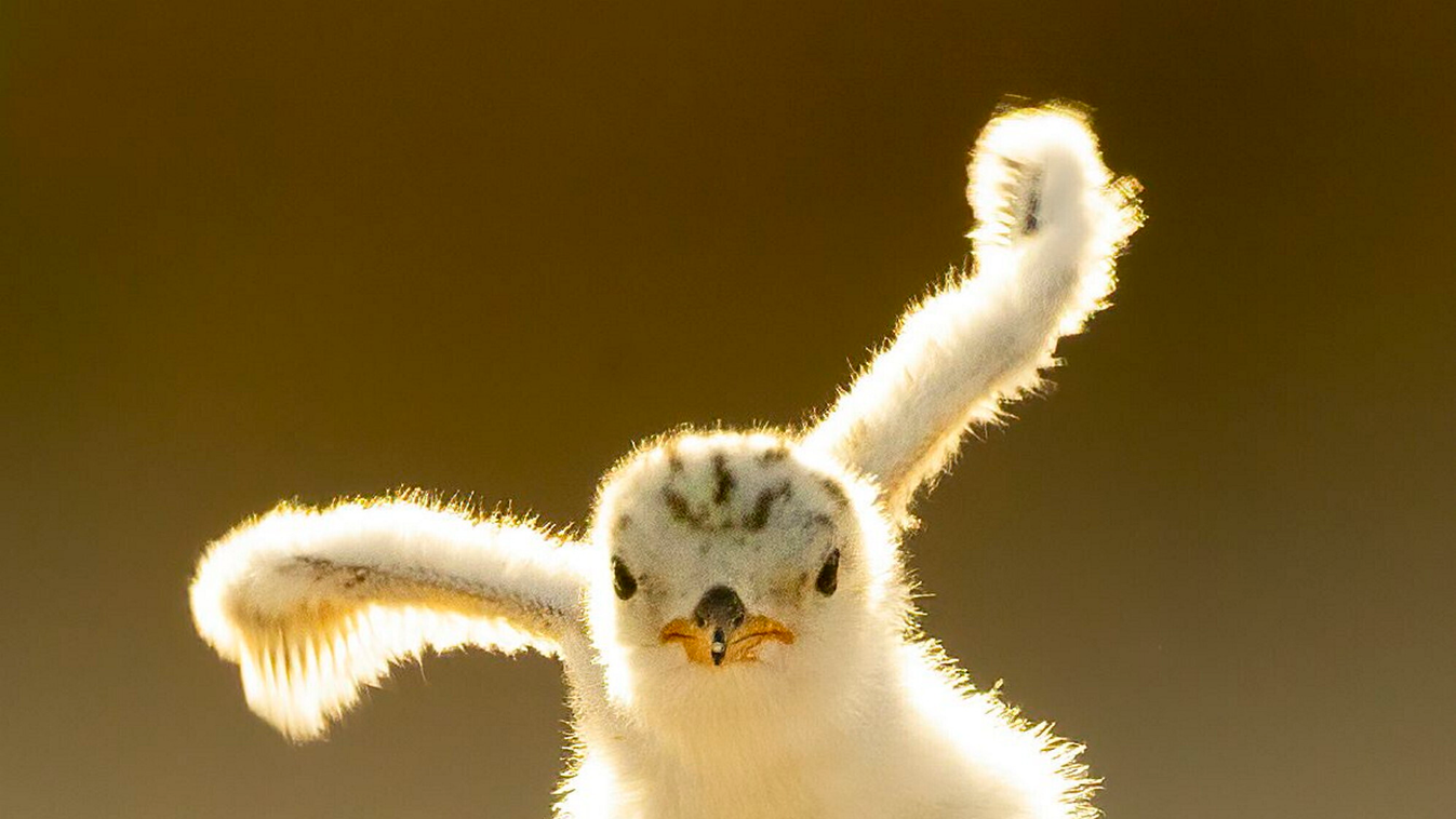 Ez a kiscsibe örömében ugrál, mert meglátta, hogy visszatértek a szülei és ráadásul ennivalót is hoztak.