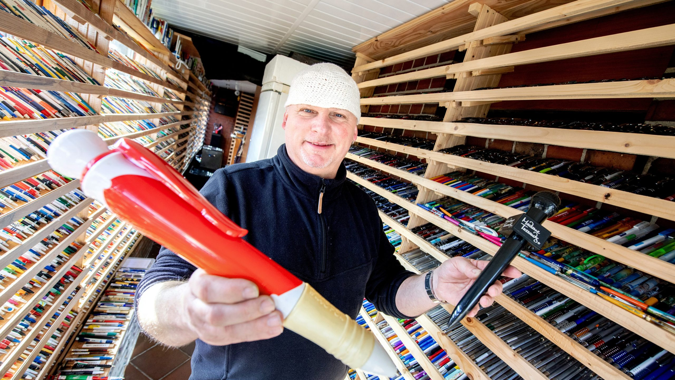 Gerd Reck 27 éve gyűjti a golyóstollakat., egy szoba teljesen tele van az íróeszközökkel.