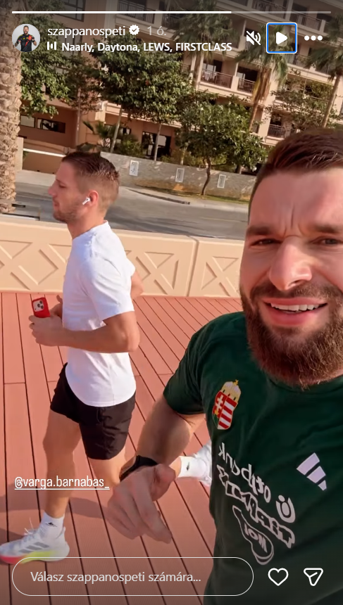 Varga azonban a bajnoki szünetet sem csak pihenéssel tölti. Elhagyta ugyan az országot és az Egyesült Arab Emírségekbe utazott, de válogatottbeli csapattársával, Szappanos Péterrel a tengerparton sem álltak le az edzéssel. A Puskás Akadémia kapusa osztott meg egy felvételt a közösségi oldalán arról, ahogy az FTC csatárával Dubajban futnak – miközben a háttérben a város ikonikus épülete, a világ egyetlen hétcsillagos szállodája, a Burj Al Arab látható.