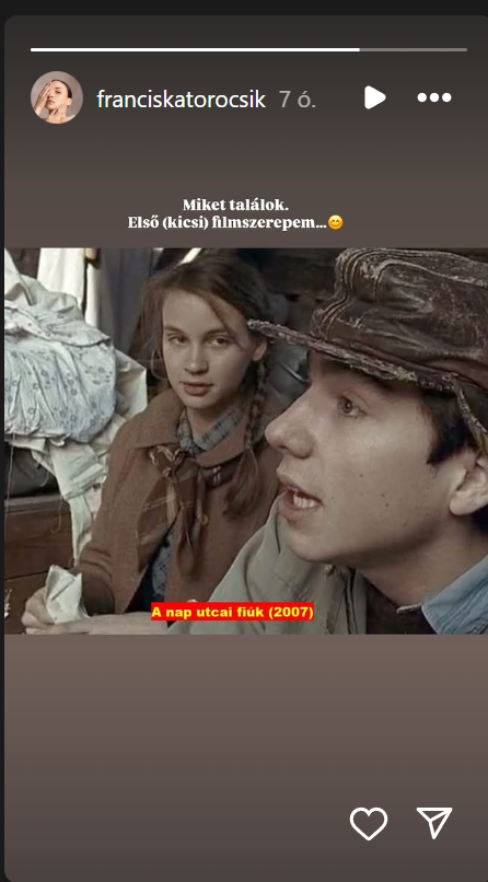 – írta Franciska a 24 óráig elérhető Instagram-történetében, ahol egy fotót is megosztott. A felvételen egy részlet látható a 2007-es A Nap utcai fiúk című filmből, amelyben a színésznő is felbukkant egy kisebb mellékszerepben, amikor még csak 16-17 éves lehetett.