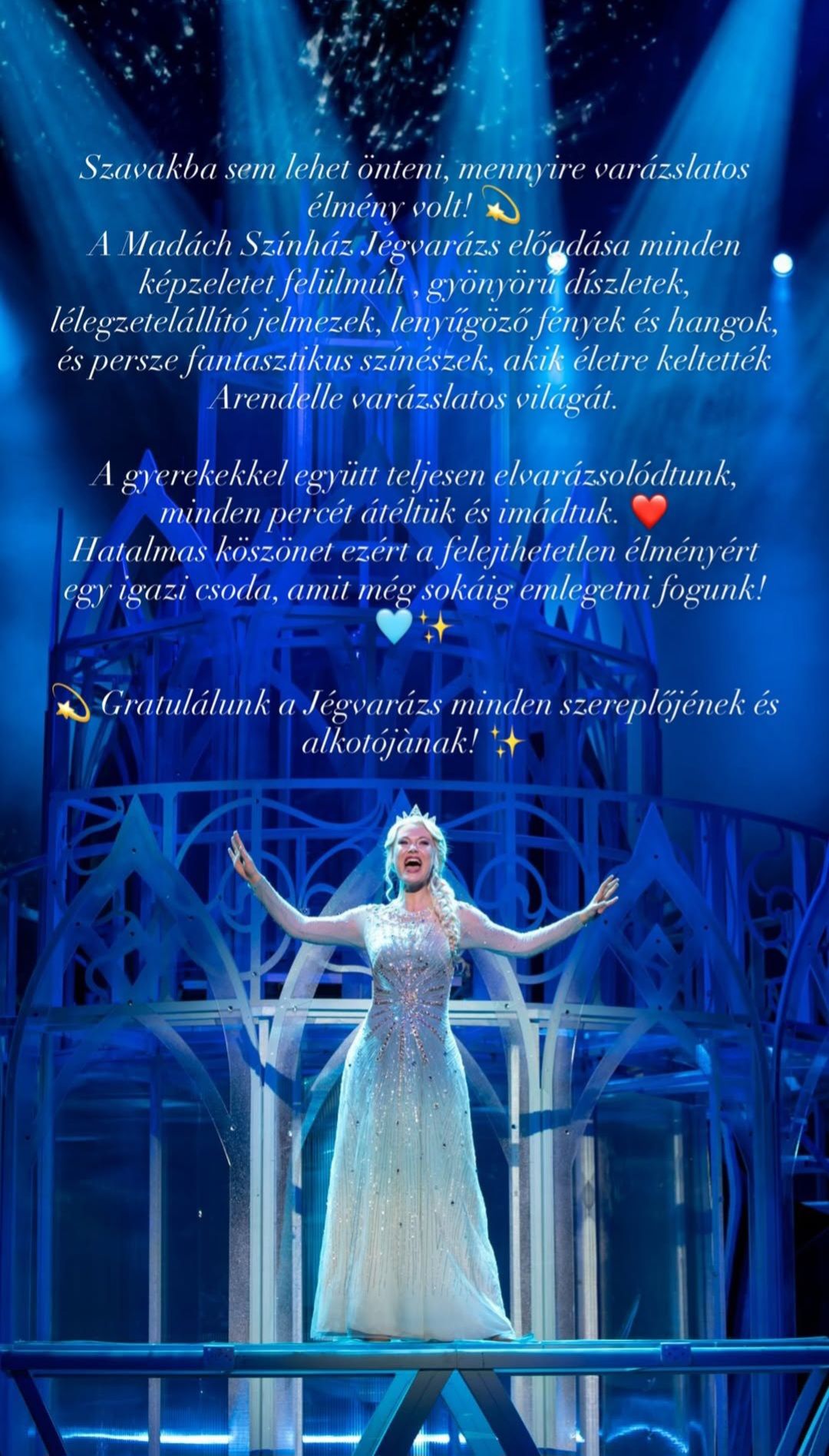A sztáranyuka vasárnap tekintette meg a Jégvarázs musicalt a Madách Színházban. Vasvári Vivien elmondása szerint hihetetlen élmény volt, egy csoda, ami a színpadon történt.