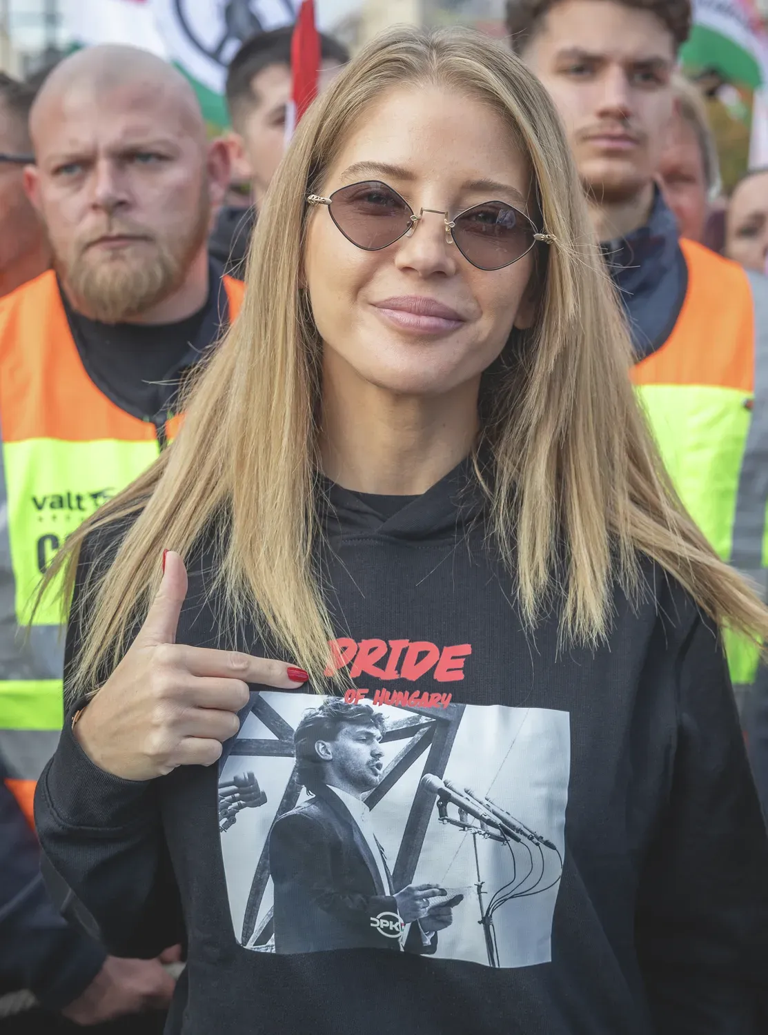 Szabó Zsófi stílusikon lett, hiszen a Háborúellenes Gyűlésen az Orbán-firkás pulcsiban jelent meg, míg az október 23-i Békemeneten Orbán Pride-os pulóverben vonult.