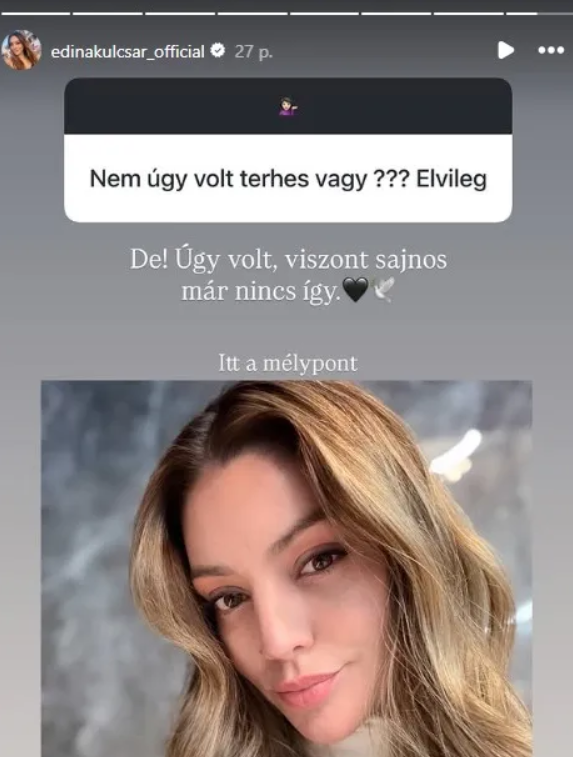 Azóta nem érkezett újabb hír a babáról. Most azonban a követők által kedvelt "kérdezz-felelek"-ben szerepelt egy kérdés a terhességgel kapcsolatban, amire Kulcsár Edina megrendítően válaszolt.