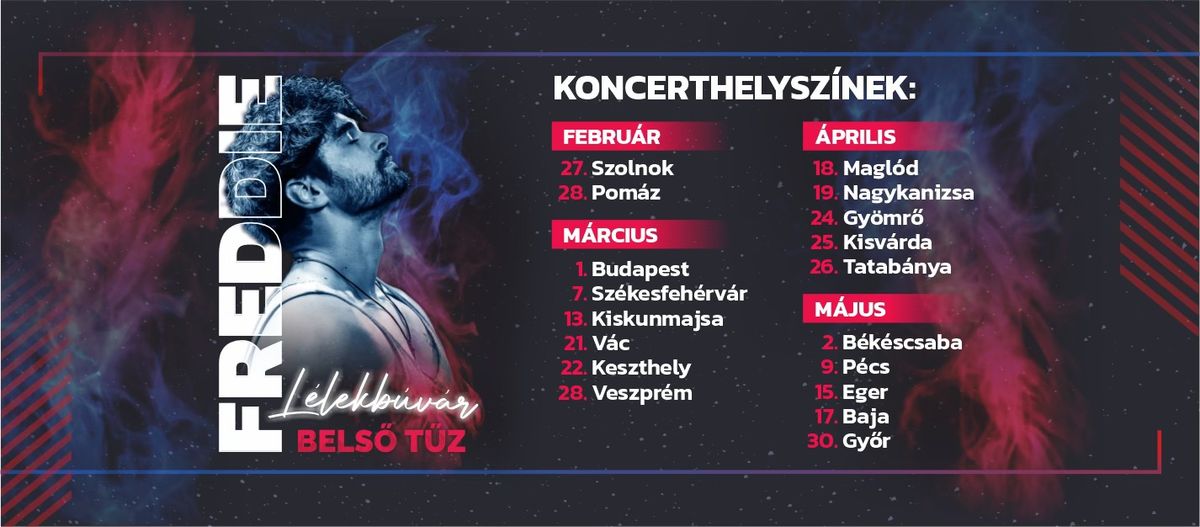 – tette hozzá Freddie, aki azt is elárulta, nem fog unatkozni a következő hónapokban. 18 állomásos, országos turnéra indul ‘Lélekbúvár - belső tűz’ című műsorával. A február 27-én startoló koncertsorozat egy valódi önismereti utazás lesz a résztvevőknek, amelynek során Freddie és zenekara dalokkal, versekkel, gondolatokkal segítik az utat, hogy mindenki megtalálja a benne rejlő éltető, belső tüzet.