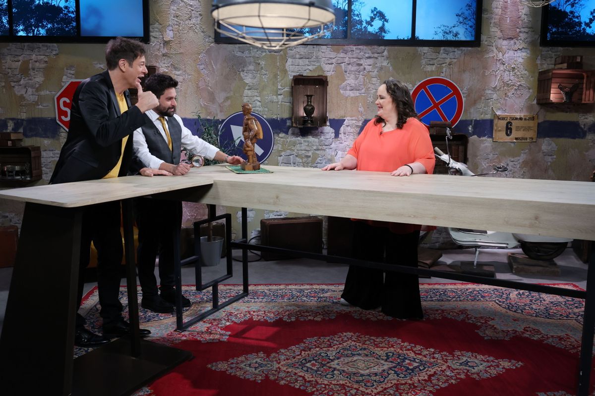 A Nagy Duett 2022 győztese egy fából készült szoborral érkezik a Kincsvadászok kereskedői elé, amely gyermekkorára emlékezteti a színésznőt.